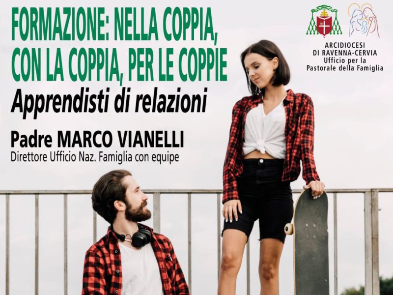 Formazione nella coppia, con la coppia, per le coppie Apprendisti di relazioni Padre Marco Vianelli Direttore Ufficio Nazionale Famiglia con equipe Ore 15.15-18 26 ottobre 2025 Parrocchia Ss. Simone e Giuda 23 novembre 2025 Parrocchia S. Lorenzo in Cesarea Ore 15.15-18 ufficiofamiglia.ravennacervia@gmail.com Info e dettagli sul volantino